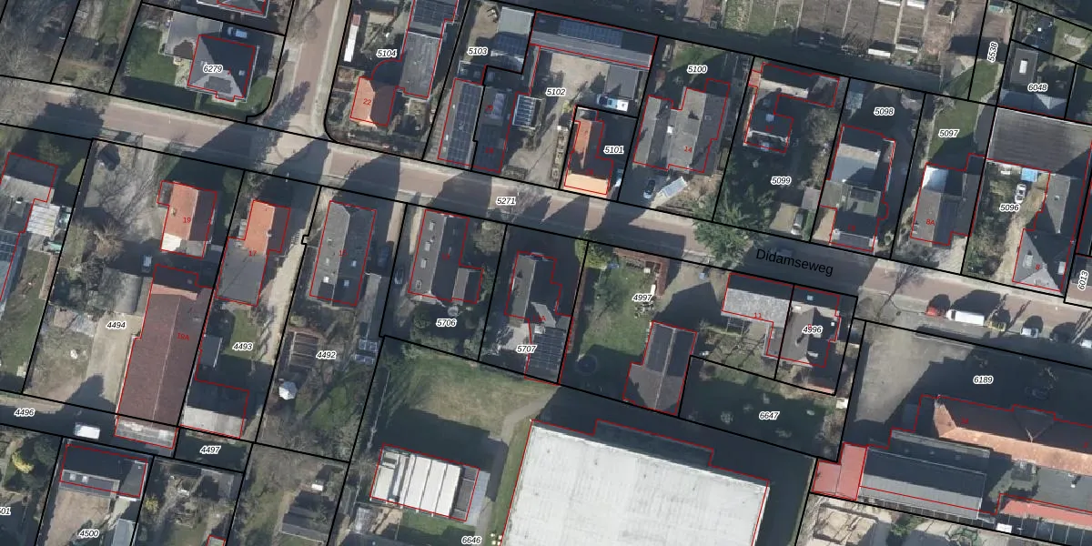 Het perceel waarop Didamseweg 11-A staat heeft een oppervlakte van 395 m². Dit is een groot perceel. De perceeloppervlakte wordt geregistreerd door het Kadaster. Gedetailleerde informatie over de maten van dit perceel kunt u vinden in het rapport Kadastrale kaart met maatvoering van Didamseweg 11-A.