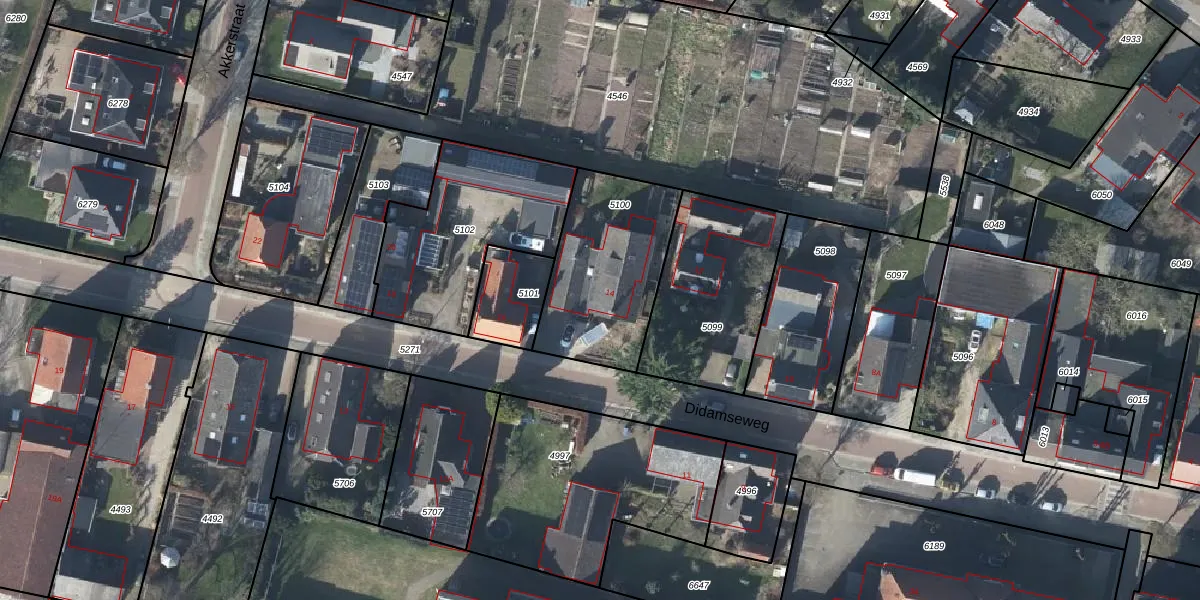 Het perceel waarop Didamseweg 14 staat heeft een oppervlakte van 560 m². Dit is een groot perceel. De perceeloppervlakte wordt geregistreerd door het Kadaster. Gedetailleerde informatie over de maten van dit perceel kunt u vinden in het rapport Kadastrale kaart met maatvoering van Didamseweg 14.
