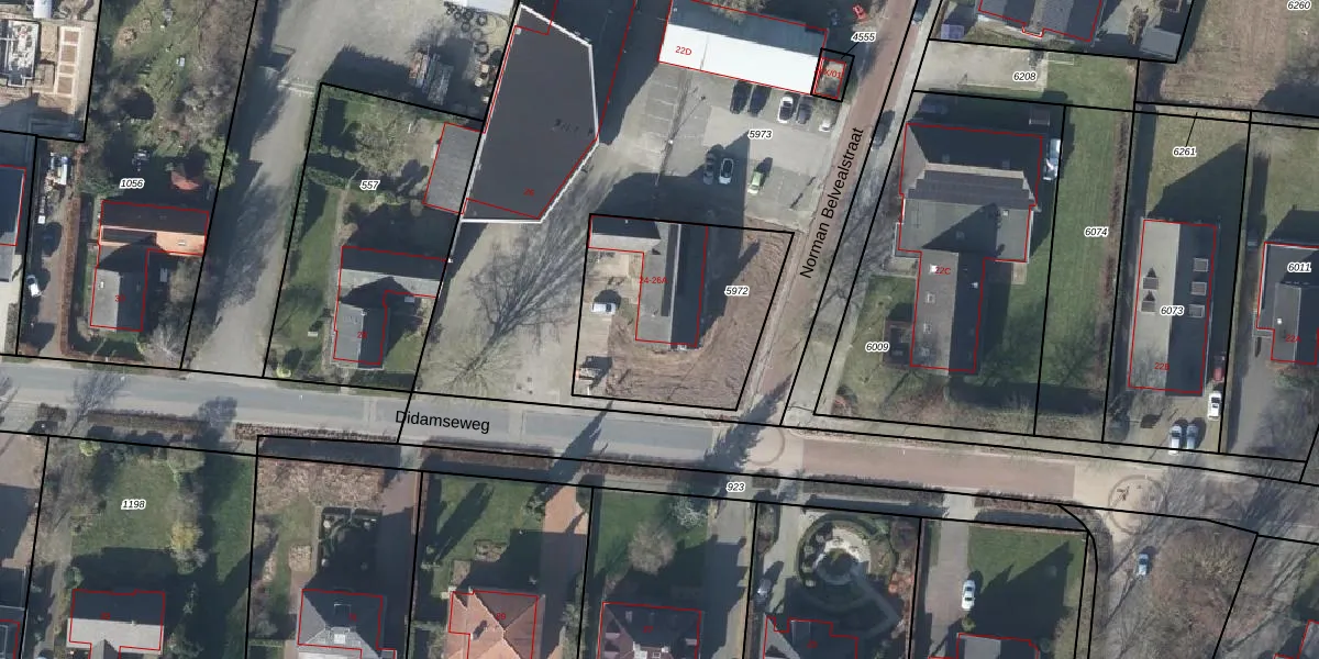 Het perceel waarop Didamseweg 24 staat heeft een oppervlakte van 770 m². Dit is een groot perceel. De perceeloppervlakte wordt geregistreerd door het Kadaster. Gedetailleerde informatie over de maten van dit perceel kunt u vinden in het rapport Kadastrale kaart met maatvoering van Didamseweg 24.