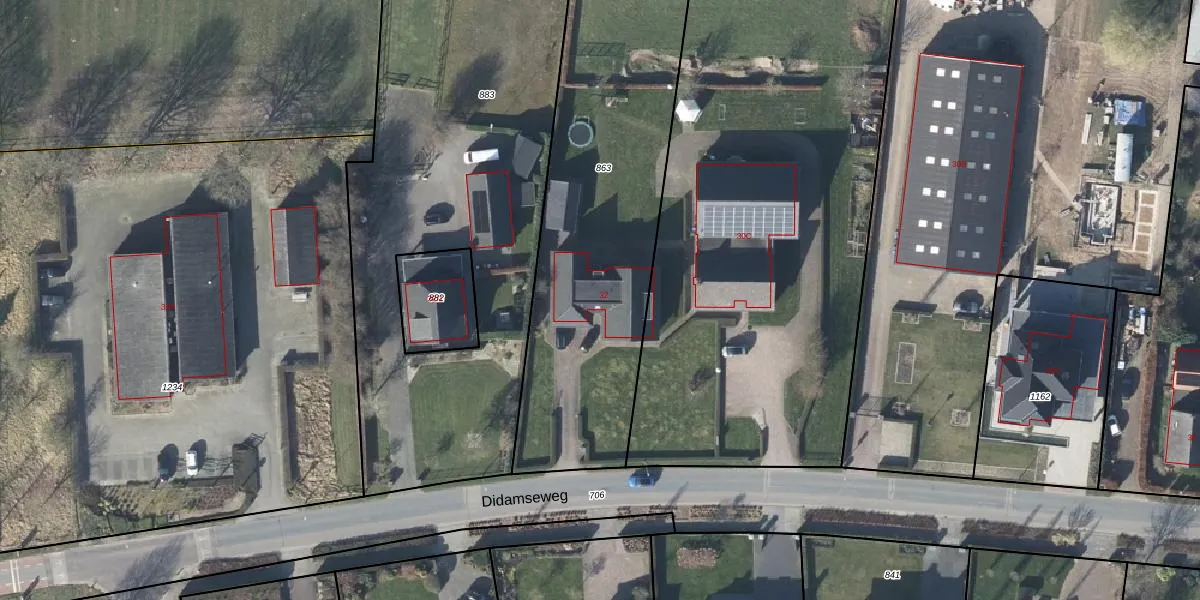 Het perceel waarop Didamseweg 32 staat heeft een oppervlakte van 2390 m². Dit is een zeer groot perceel. De perceeloppervlakte wordt geregistreerd door het Kadaster. Gedetailleerde informatie over de maten van dit perceel kunt u vinden in het rapport Kadastrale kaart met maatvoering van Didamseweg 32.