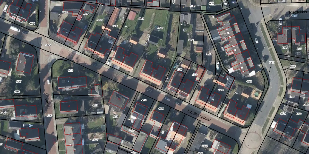 Het perceel waarop Dr. Blomstraat 31 staat heeft een oppervlakte van 1751 m². Dit is een zeer groot perceel. De perceeloppervlakte wordt geregistreerd door het Kadaster. Gedetailleerde informatie over de maten van dit perceel kunt u vinden in het rapport Kadastrale kaart met maatvoering van Dr. Blomstraat 31.