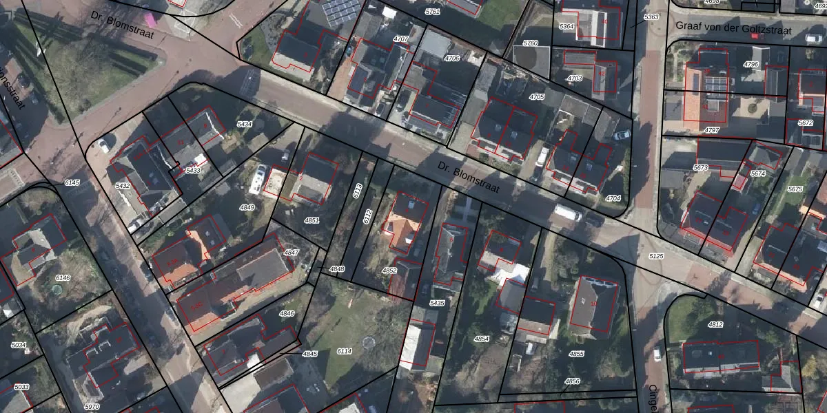 Het perceel waarop Dr. Blomstraat 4 staat heeft een oppervlakte van 416 m². Dit is een groot perceel. De perceeloppervlakte wordt geregistreerd door het Kadaster. Gedetailleerde informatie over de maten van dit perceel kunt u vinden in het rapport Kadastrale kaart met maatvoering van Dr. Blomstraat 4.