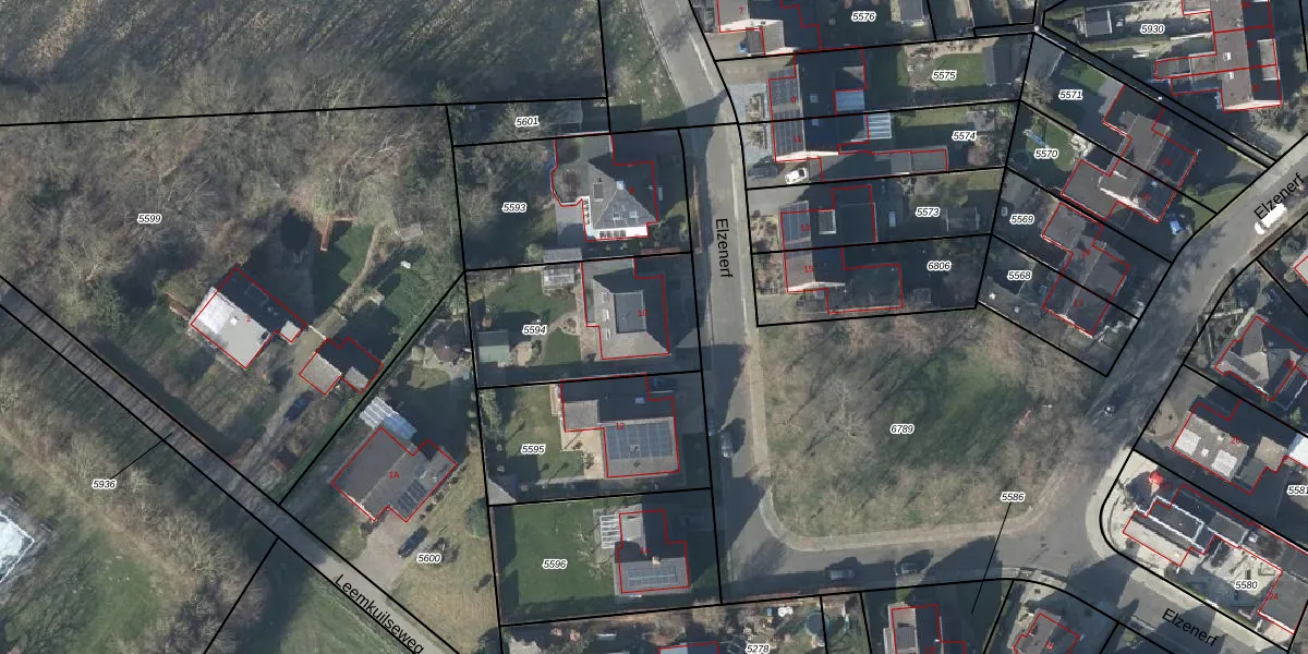 Het perceel waarop Elzenerf 10 staat heeft een oppervlakte van 630 m². Dit is een groot perceel. De perceeloppervlakte wordt geregistreerd door het Kadaster. Gedetailleerde informatie over de maten van dit perceel kunt u vinden in het rapport Kadastrale kaart met maatvoering van Elzenerf 10.