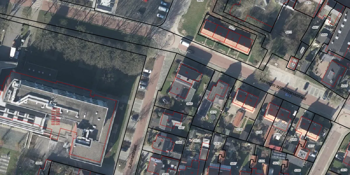 Het perceel waarop Julianastraat 9 staat heeft een oppervlakte van 740 m². Dit is een groot perceel. De perceeloppervlakte wordt geregistreerd door het Kadaster. Gedetailleerde informatie over de maten van dit perceel kunt u vinden in het rapport Kadastrale kaart met maatvoering van Julianastraat 9.