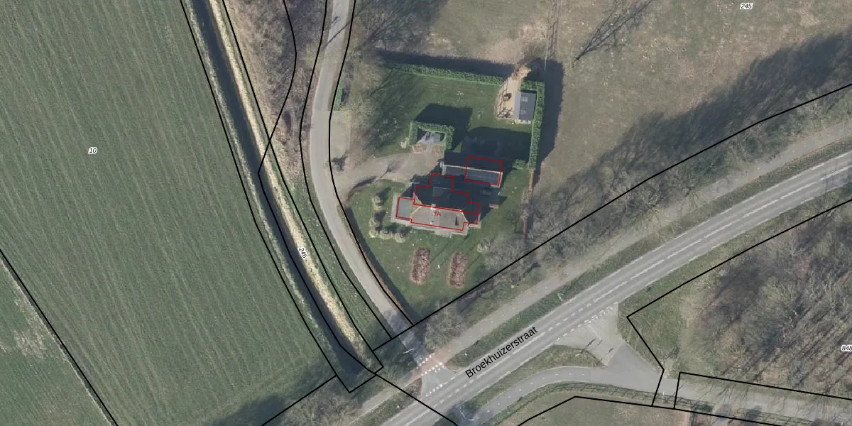 Het perceel waarop Kempsestraat 7-A staat heeft een oppervlakte van 1,1 ha. Dit is een zeer groot perceel. De perceeloppervlakte wordt geregistreerd door het Kadaster. Gedetailleerde informatie over de maten van dit perceel kunt u vinden in het rapport Kadastrale kaart met maatvoering van Kempsestraat 7-A.