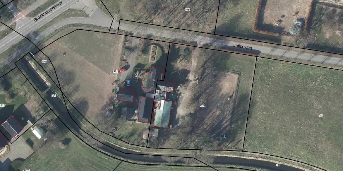Het perceel waarop Loilseweg 13-A staat heeft een oppervlakte van 3260 m². Dit is een zeer groot perceel. De perceeloppervlakte wordt geregistreerd door het Kadaster. Gedetailleerde informatie over de maten van dit perceel kunt u vinden in het rapport Kadastrale kaart met maatvoering van Loilseweg 13-A.
