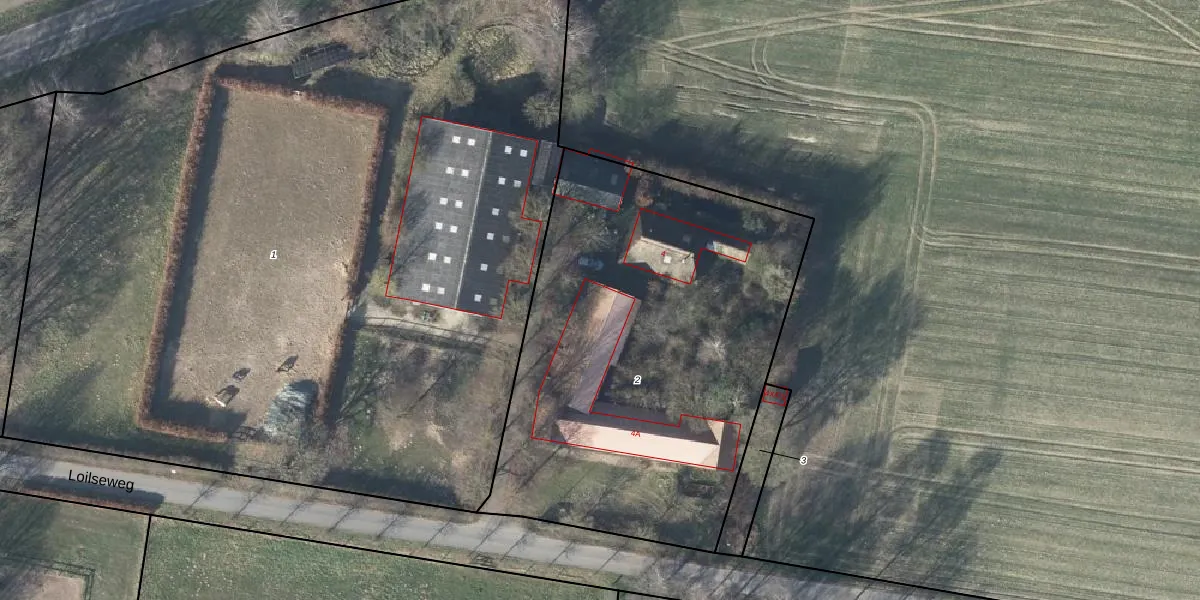 Het perceel waarop Loilseweg 4-A staat heeft een oppervlakte van 2490 m². Dit is een zeer groot perceel. De perceeloppervlakte wordt geregistreerd door het Kadaster. Gedetailleerde informatie over de maten van dit perceel kunt u vinden in het rapport Kadastrale kaart met maatvoering van Loilseweg 4-A.