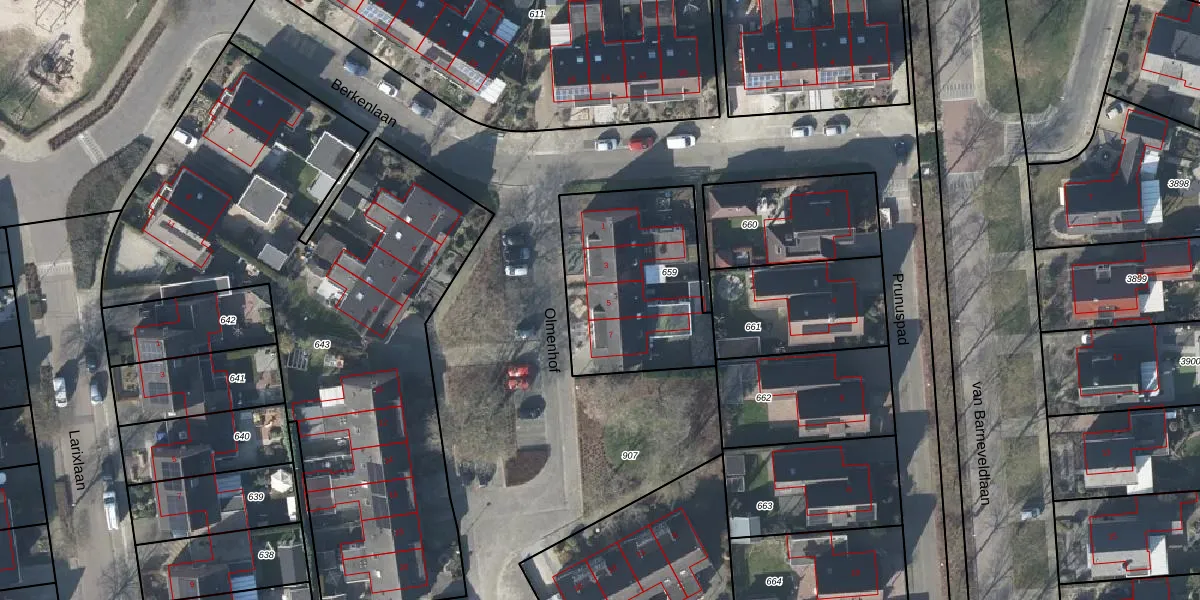 Het perceel waarop Olmenhof 5 staat heeft een oppervlakte van 693 m². Dit is een groot perceel. De perceeloppervlakte wordt geregistreerd door het Kadaster. Gedetailleerde informatie over de maten van dit perceel kunt u vinden in het rapport Kadastrale kaart met maatvoering van Olmenhof 5.