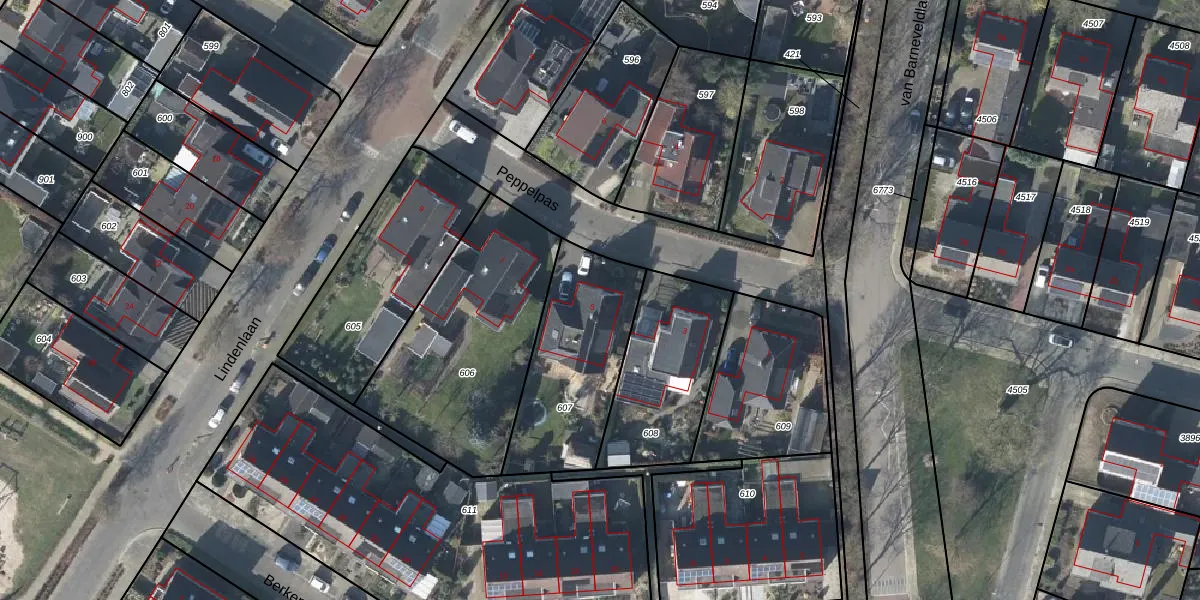 Gebruik de zoekbalk of klik op een perceel voor informatie over de adressen binnen dit perceel.