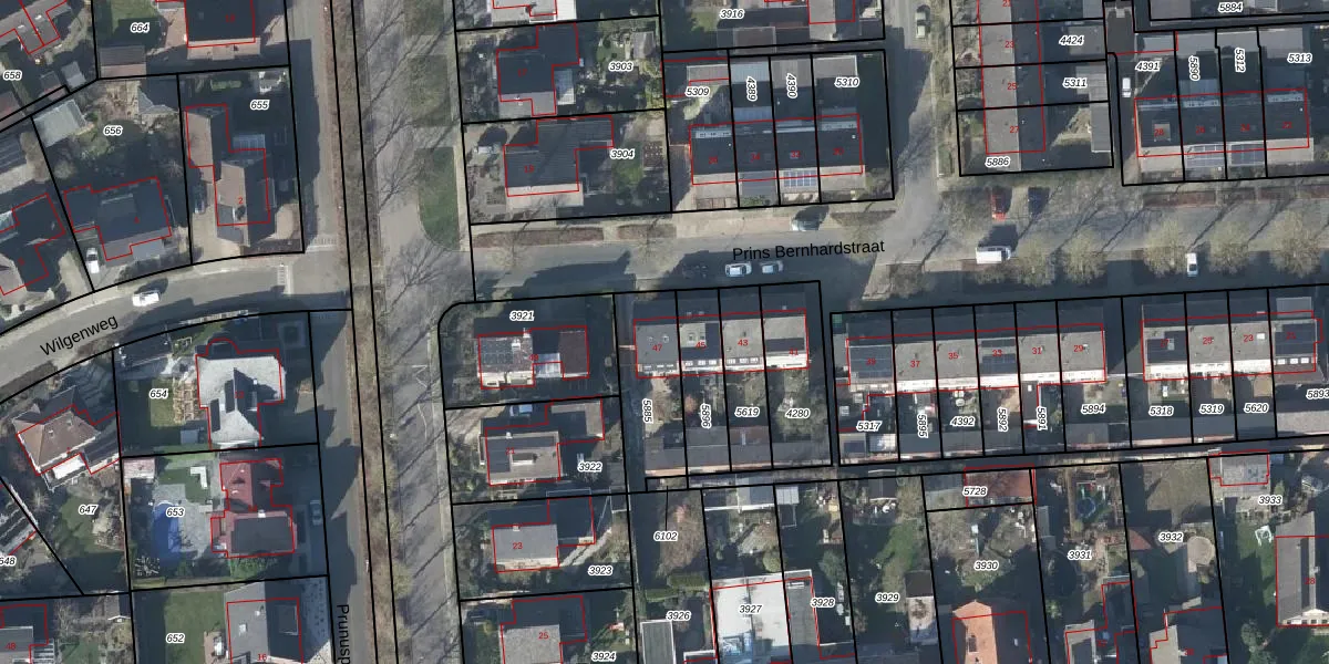 Prins Bernhardstraat 47 is gelegen op kadastraal perceel WEH00H5885. Deze kadastrale aanduiding is uniek en wordt gebruikt door het Kadaster om eigendomsrechten en andere zakelijke rechten vast te leggen. Het perceel maakt onderdeel uit van de kadastrale gemeente Wehl.