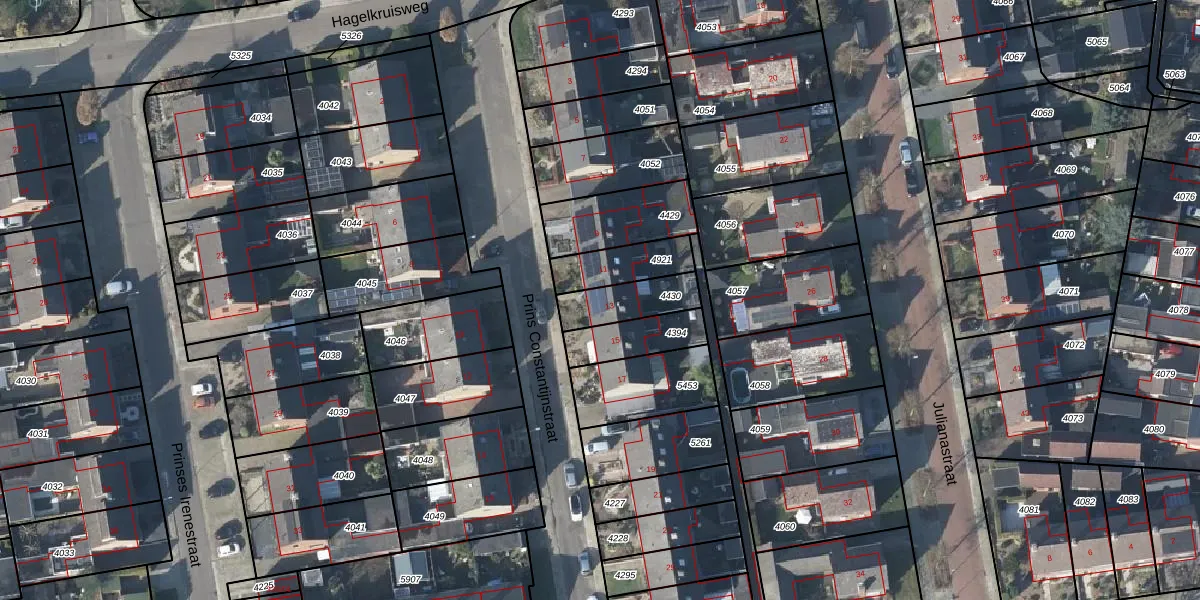 Gebruik de zoekbalk of klik op een perceel voor informatie over de adressen binnen dit perceel.