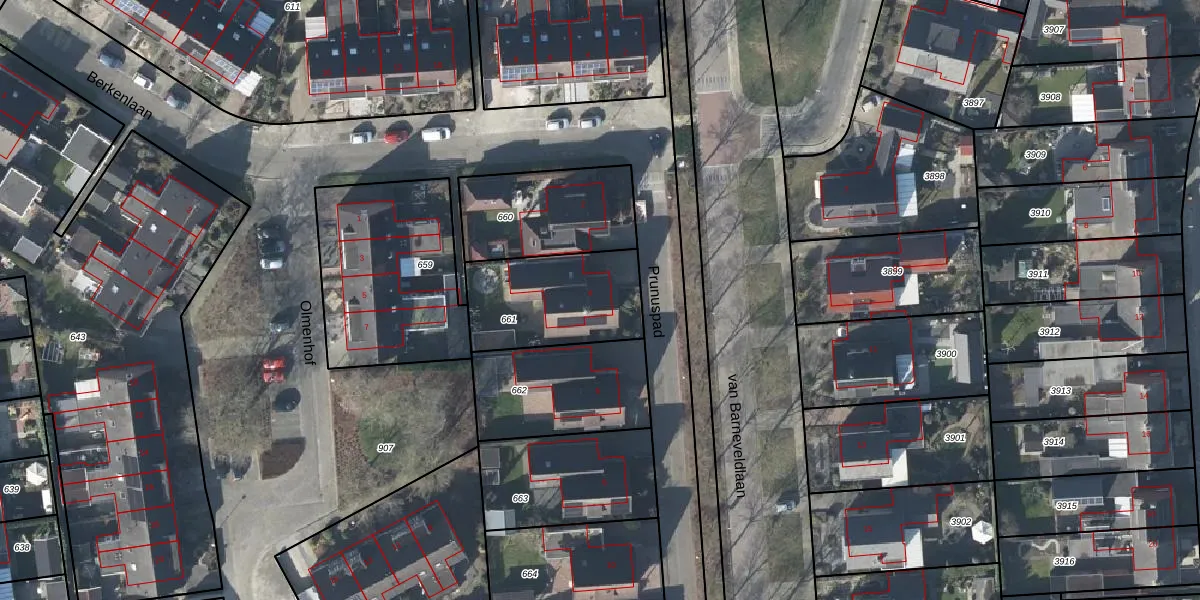 Het perceel waarop Prunuspad 4 staat heeft een oppervlakte van 434 m². Dit is een groot perceel. De perceeloppervlakte wordt geregistreerd door het Kadaster. Gedetailleerde informatie over de maten van dit perceel kunt u vinden in het rapport Kadastrale kaart met maatvoering van Prunuspad 4.