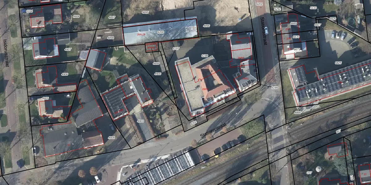 Het perceel waarop Stationsstraat 28-10 staat heeft een oppervlakte van 1746 m². Dit is een zeer groot perceel. De perceeloppervlakte wordt geregistreerd door het Kadaster. Gedetailleerde informatie over de maten van dit perceel kunt u vinden in het rapport Kadastrale kaart met maatvoering van Stationsstraat 28-10.
