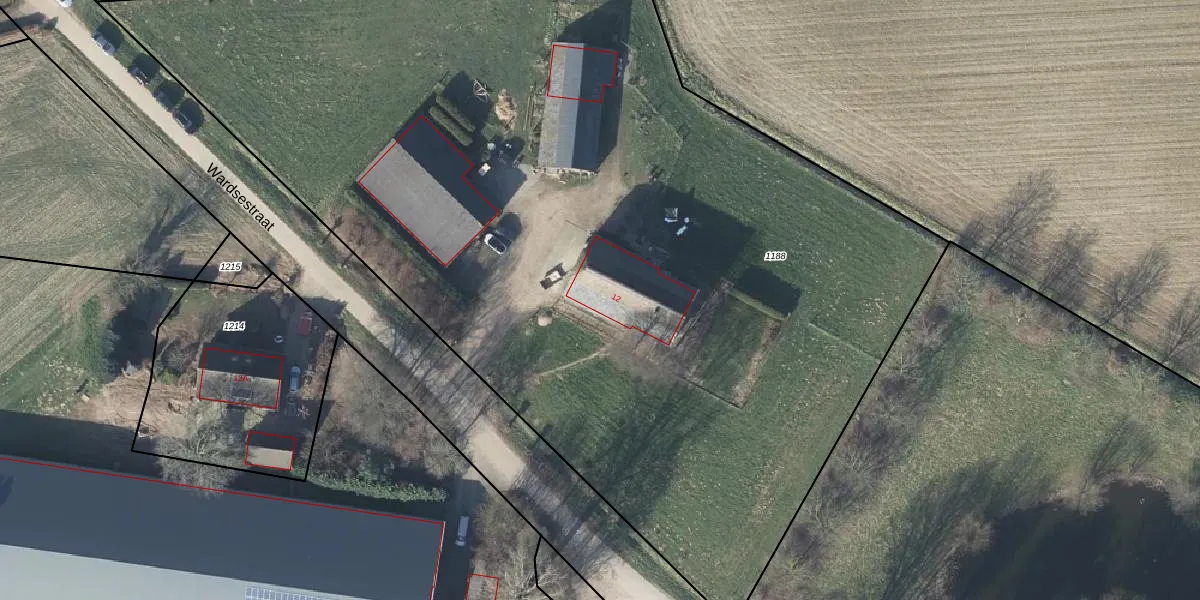Het perceel waarop Wardsestraat 12 staat heeft een oppervlakte van 7170 m². Dit is een zeer groot perceel. De perceeloppervlakte wordt geregistreerd door het Kadaster. Gedetailleerde informatie over de maten van dit perceel kunt u vinden in het rapport Kadastrale kaart met maatvoering van Wardsestraat 12.
