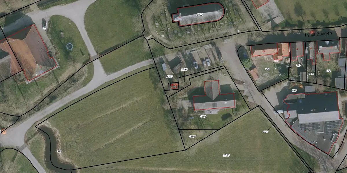 Het perceel waarop het adres ligt is JWD00-E-1297. De afkorting 'JWD00' staat voor kadastrale gemeente Jorwerd. Het perceel is 23 m² groot. Dat is kleiner dan de gemiddelde perceeloppervlakte in Jorwerd, dat op 1,1 ha ligt. Het grootste perceel in de kadastrale gemeente is 11,8 ha. Het kleinste perceel heeft een oppervlakte van 1 m². Dit is het enige adres dat aanwezig is op het perceel. De laatste wijziging in het de Basisregistratie Kadaster (BRK) was op 13-05-2002.