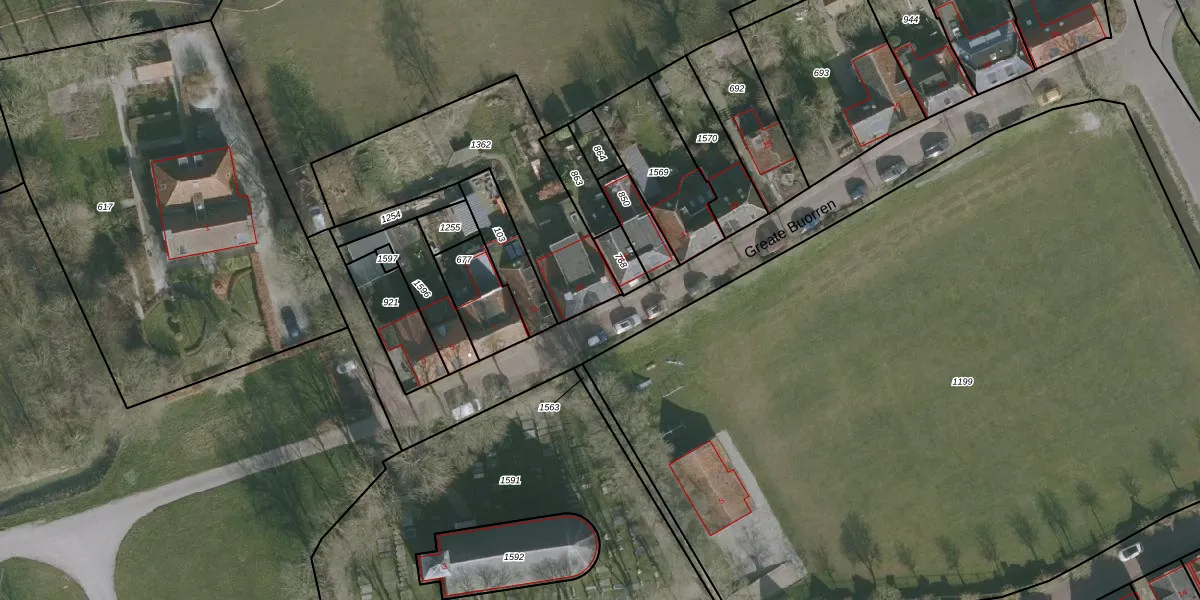 Het perceel waarop Greate Buorren 13 staat heeft een oppervlakte van 770 m². Dit is een groot perceel. De perceeloppervlakte wordt geregistreerd door het Kadaster. Gedetailleerde informatie over de maten van dit perceel kunt u vinden in het rapport Kadastrale kaart met maatvoering van Greate Buorren 13.