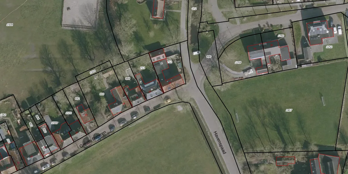 Het perceel waarop Greate Buorren 35 staat heeft een oppervlakte van 384 m². Dit is een groot perceel. De perceeloppervlakte wordt geregistreerd door het Kadaster. Gedetailleerde informatie over de maten van dit perceel kunt u vinden in het rapport Kadastrale kaart met maatvoering van Greate Buorren 35.