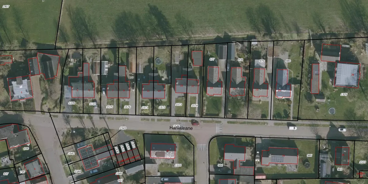 Hanialeane 15 is gelegen op kadastraal perceel JWD00E1573. Deze kadastrale aanduiding is uniek en wordt gebruikt door het Kadaster om eigendomsrechten en andere zakelijke rechten vast te leggen. Het perceel maakt onderdeel uit van de kadastrale gemeente Jorwerd.