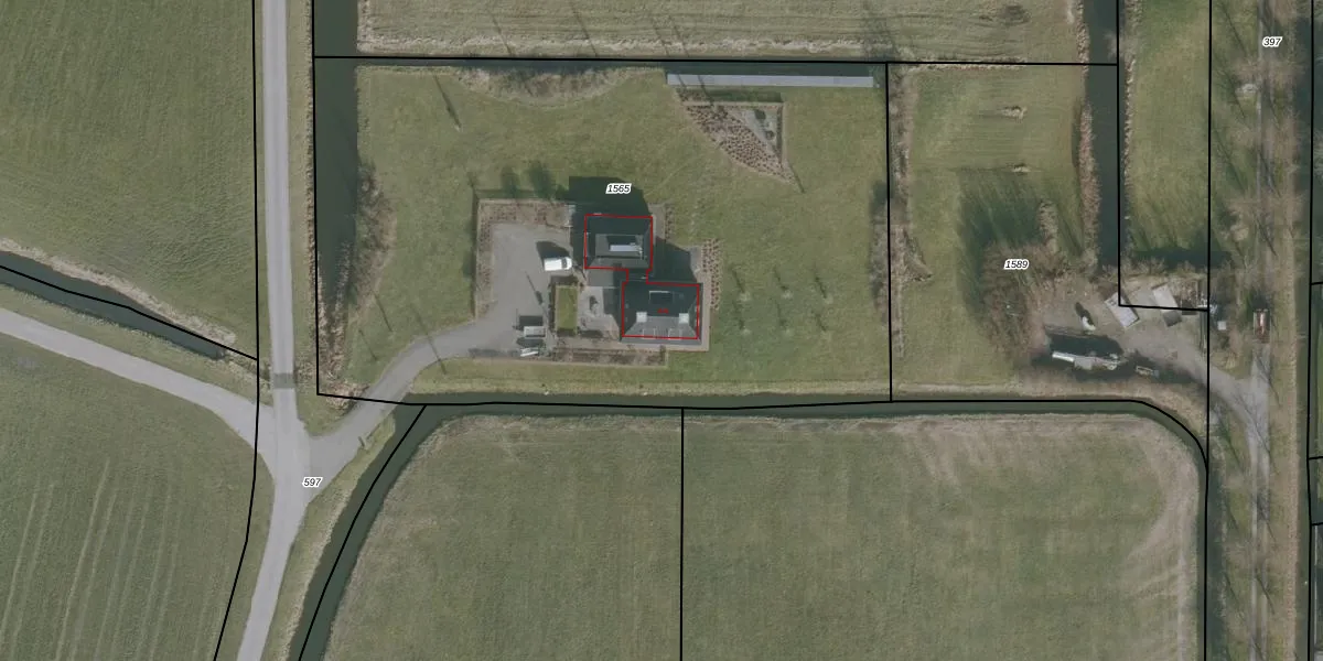Het adres is gelegen op perceel 1565 in de sectie E en de kadastrale gemeente Jorwerd. De kadastrale aanduiding is aldus JWD00-E-1565. Het perceel is 4530 m² groot. Dat is kleiner dan de gemiddelde perceeloppervlakte in Jorwerd, dat op 1,1 ha ligt. De grootste perceeloppervlakte in de kadastrale gemeente is 11,8 ha. De kleinste oppervlakte bedraagt 1 m². Dit is het enige adres dat aanwezig is op het perceel. In de Basisregistratie Kadaster (BRK) werden de grenzen van het perceel geregistreerd op 13-11-2012.