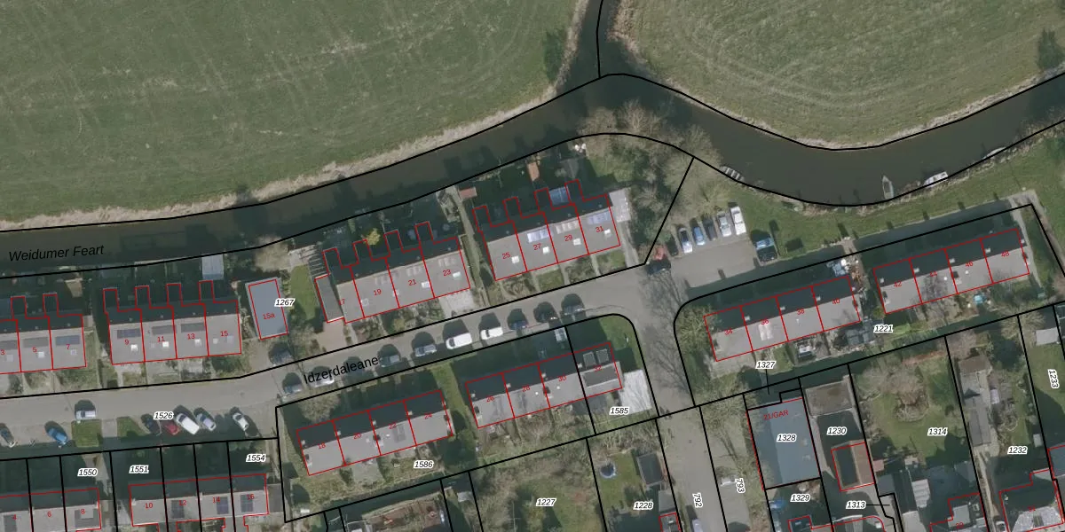 Het perceel waarop Idzerdaleane 27 staat heeft een oppervlakte van 3162 m². Dit is een zeer groot perceel. De perceeloppervlakte wordt geregistreerd door het Kadaster. Gedetailleerde informatie over de maten van dit perceel kunt u vinden in het rapport Kadastrale kaart met maatvoering van Idzerdaleane 27.