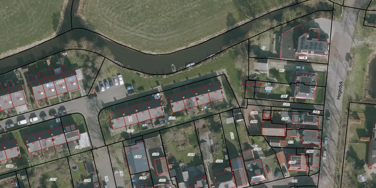 Het adres is gelegen op perceel 1221 in de sectie E en de kadastrale gemeente Jorwerd. De kadastrale aanduiding is aldus JWD00-E-1221. Het perceel is kleiner dan gemiddeld in Jorwerd. Het perceel is 1420 m² groot, terwijl het gemiddelde ligt op 1,1 ha. Het kleinste perceel in de kadastrale gemeente is 1 m² groot. De grootste perceeloppervlakte is 11,8 ha. Op het perceel zijn 8 adressen aanwezig. In de Basisregistratie Kadaster (BRK) werden de grenzen van het perceel geregistreerd op 06-05-2004.