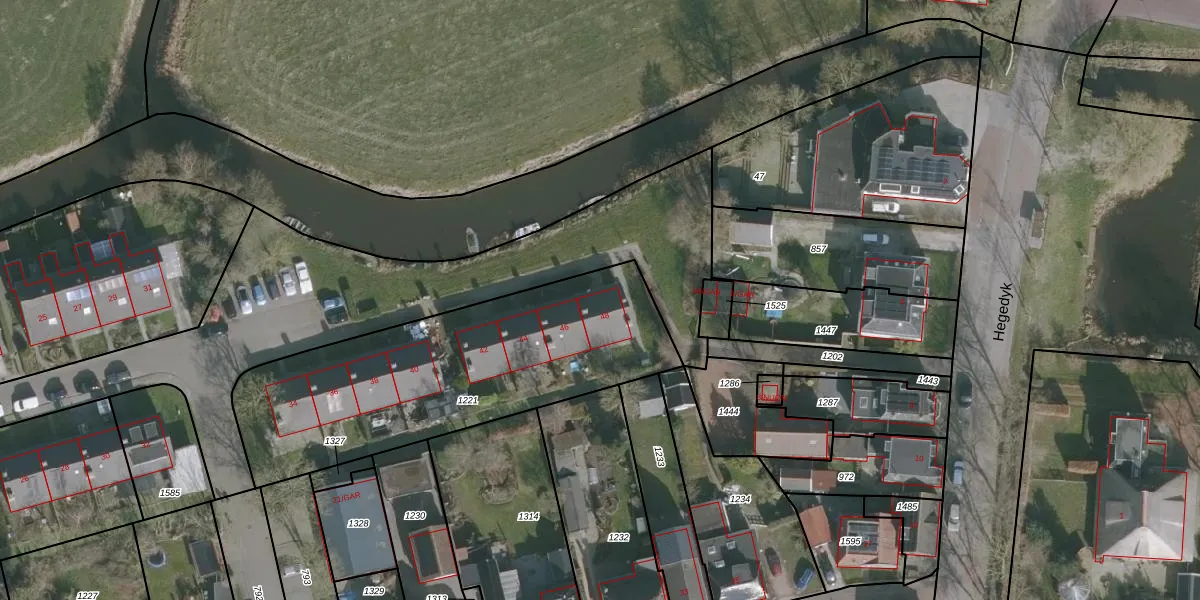 Het adres is gelegen op perceel 1221 in de sectie E en de kadastrale gemeente Jorwerd. De kadastrale aanduiding is aldus JWD00-E-1221. Het perceel is kleiner dan gemiddeld in Jorwerd. Het perceel is 1420 m² groot, terwijl het gemiddelde ligt op 1,1 ha. Het kleinste perceel in de kadastrale gemeente is 1 m² groot. De grootste perceeloppervlakte is 11,8 ha. Op het perceel zijn 8 adressen aanwezig. De huidige grenzen van het perceel zijn digitaal in de Basisregistratie Kadaster (BRK) geregistreerd op 06-05-2004.