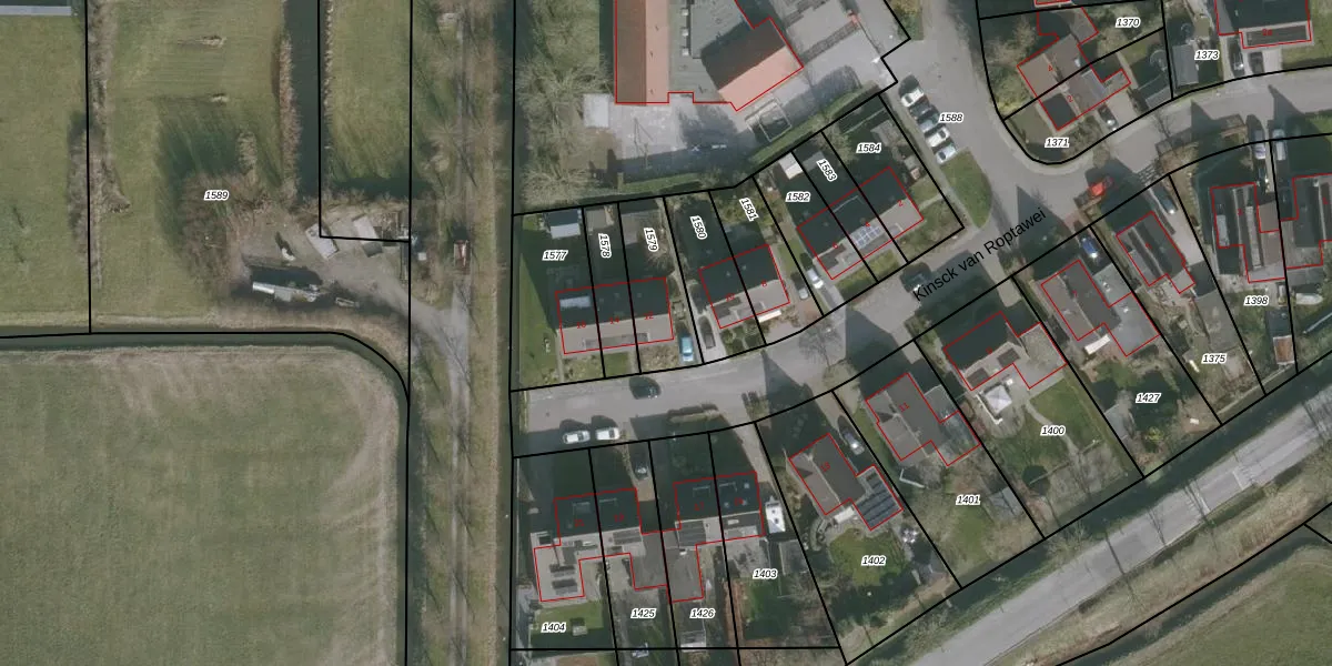 Kinsck van Roptawei 12 is gelegen op kadastraal perceel JWD00E1579. Deze kadastrale aanduiding is uniek en wordt gebruikt door het Kadaster om eigendomsrechten en andere zakelijke rechten vast te leggen. Het perceel maakt onderdeel uit van de kadastrale gemeente Jorwerd.