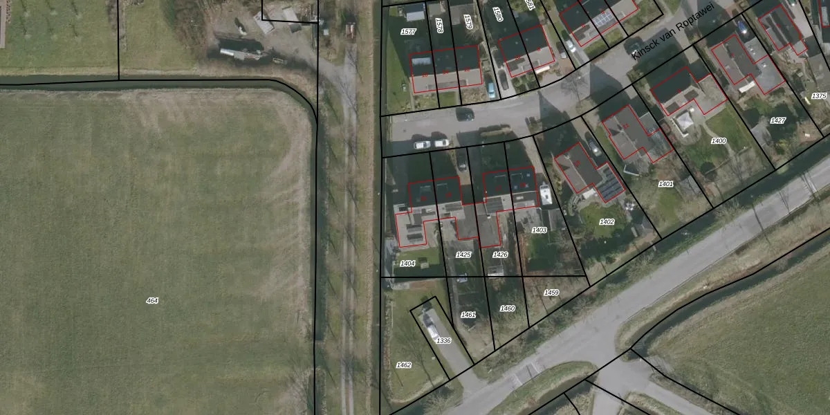 Kinsck van Roptawei 21 is gelegen op kadastraal perceel JWD00E1404. Deze kadastrale aanduiding is uniek en wordt gebruikt door het Kadaster om eigendomsrechten en andere zakelijke rechten vast te leggen. Het perceel maakt onderdeel uit van de kadastrale gemeente Jorwerd.