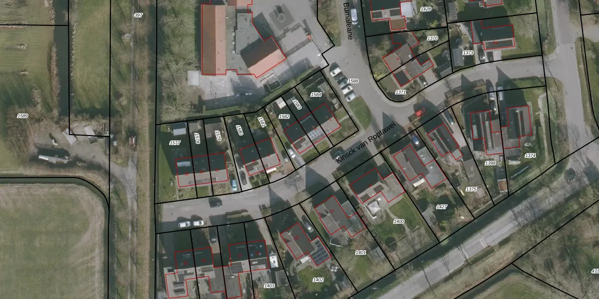 Kinsck van Roptawei 6 is gelegen op kadastraal perceel JWD00E1582. Deze kadastrale aanduiding is uniek en wordt gebruikt door het Kadaster om eigendomsrechten en andere zakelijke rechten vast te leggen. Het perceel maakt onderdeel uit van de kadastrale gemeente Jorwerd.