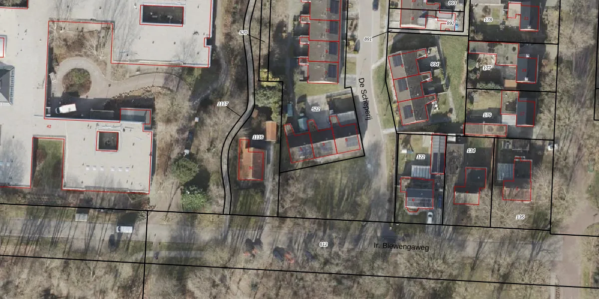 Het adres is gelegen op perceel 522 in de sectie E en de kadastrale gemeente Schoonebeek. De kadastrale aanduiding is aldus SNB00-E-522. Het perceel is 1465 m² groot. Dat is kleiner dan de gemiddelde perceeloppervlakte in Schoonebeek, dat op 8469 m² ligt. Het grootste perceel in de kadastrale gemeente is 1,12 km². Het kleinste perceel heeft een oppervlakte van 0 m². Op het perceel liggen in totaal 7 adressen. De laatste wijziging in het de Basisregistratie Kadaster (BRK) was op 25-05-2000.