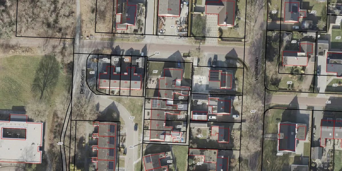 Het perceel waarop De Scheperij 18 staat heeft een oppervlakte van 433 m². Dit is een groot perceel. De perceeloppervlakte wordt geregistreerd door het Kadaster. Gedetailleerde informatie over de maten van dit perceel kunt u vinden in het rapport Kadastrale kaart met maatvoering van De Scheperij 18.