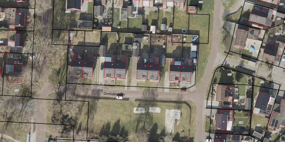Orchideelaan 9 is gelegen op kadastraal perceel SNB00E335. Deze kadastrale aanduiding is uniek en wordt gebruikt door het Kadaster om eigendomsrechten en andere zakelijke rechten vast te leggen. Het perceel maakt onderdeel uit van de kadastrale gemeente Schoonebeek.