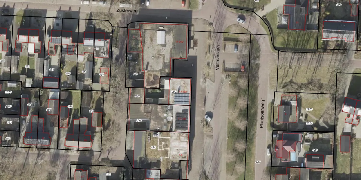 Veltmanlaan 13 is gelegen op kadastraal perceel SNB00E990. Deze kadastrale aanduiding is uniek en wordt gebruikt door het Kadaster om eigendomsrechten en andere zakelijke rechten vast te leggen. Het perceel maakt onderdeel uit van de kadastrale gemeente Schoonebeek.