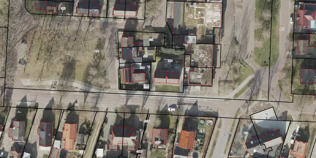 Het perceel waarop Zuidersloot 71 staat heeft een oppervlakte van 573 m². Dit is een groot perceel. De perceeloppervlakte wordt geregistreerd door het Kadaster. Gedetailleerde informatie over de maten van dit perceel kunt u vinden in het rapport Kadastrale kaart met maatvoering van Zuidersloot 71.