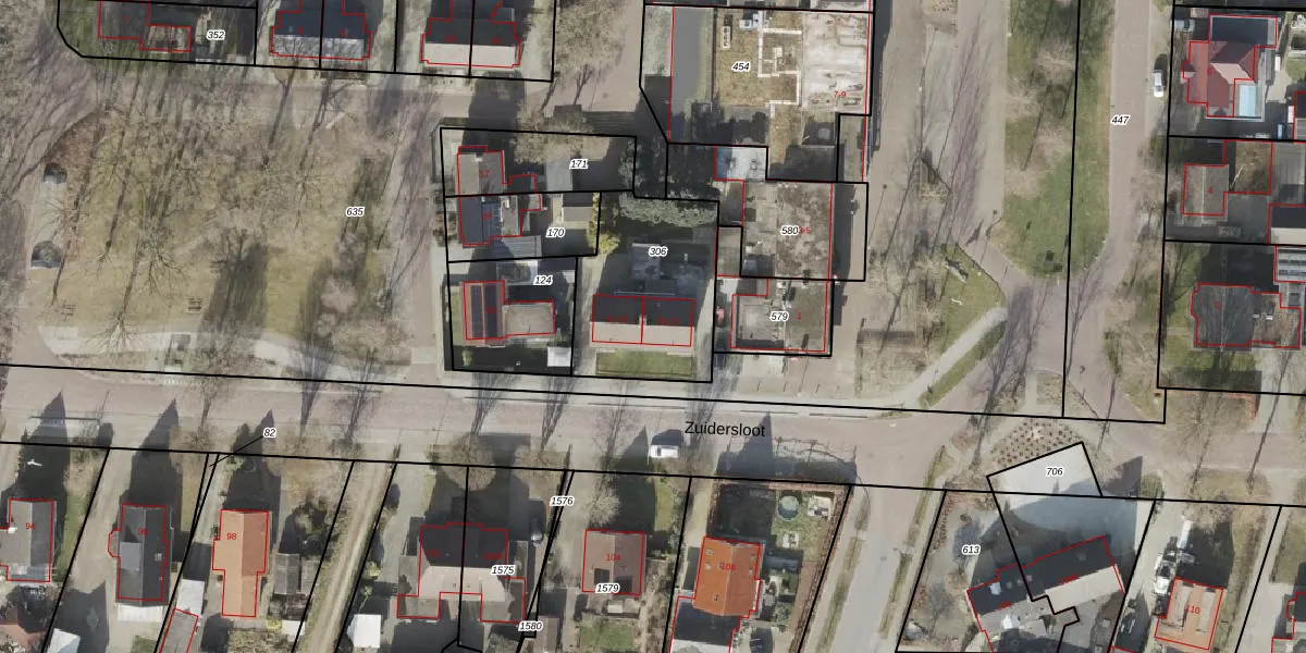 Het perceel waarop Zuidersloot 75 staat heeft een oppervlakte van 573 m². Dit is een groot perceel. De perceeloppervlakte wordt geregistreerd door het Kadaster. Gedetailleerde informatie over de maten van dit perceel kunt u vinden in het rapport Kadastrale kaart met maatvoering van Zuidersloot 75.