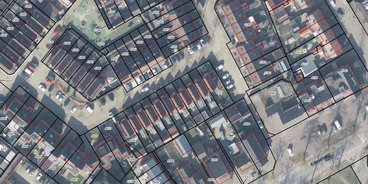 Het adres is gelegen op perceel 4340 in de sectie B en de kadastrale gemeente Ede. De kadastrale aanduiding is aldus EDE01-B-4340. De gemiddelde perceelgrootte in Ede is 2771,33 m². Dit perceel is kleiner: de perceeloppervlakte bedraagt 138 m². Het grootste perceel in de kadastrale gemeente is 2,10 km². Het kleinste perceel heeft een oppervlakte van 0 m². Op het perceel bevinden zich geen andere adressen. In de Basisregistratie Kadaster (BRK) werden de grenzen van het perceel geregistreerd op 28-05-2008.