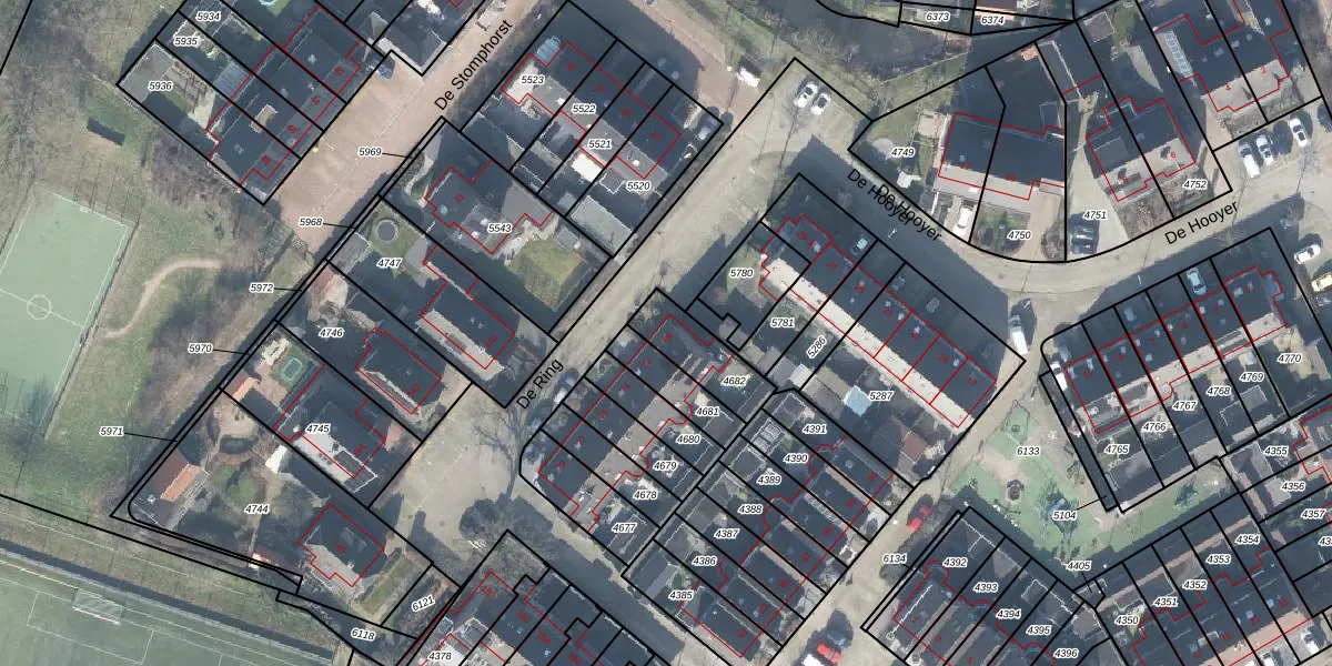 Het perceel waarop De Ring 69 staat heeft een oppervlakte van 165 m². Dit is een middelgroot perceel. De perceeloppervlakte wordt geregistreerd door het Kadaster. Gedetailleerde informatie over de maten van dit perceel kunt u vinden in het rapport Kadastrale kaart met maatvoering van De Ring 69.