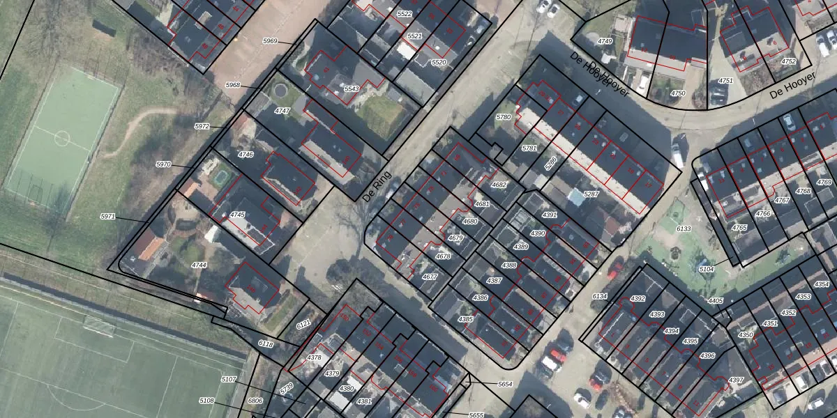 Het perceel waarop De Ring 75 staat heeft een oppervlakte van 120 m². Dit is een middelgroot perceel. De perceeloppervlakte wordt geregistreerd door het Kadaster. Gedetailleerde informatie over de maten van dit perceel kunt u vinden in het rapport Kadastrale kaart met maatvoering van De Ring 75.