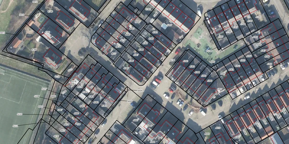 Het perceel waarop De Ring 83 staat heeft een oppervlakte van 130 m². Dit is een middelgroot perceel. De perceeloppervlakte wordt geregistreerd door het Kadaster. Gedetailleerde informatie over de maten van dit perceel kunt u vinden in het rapport Kadastrale kaart met maatvoering van De Ring 83.