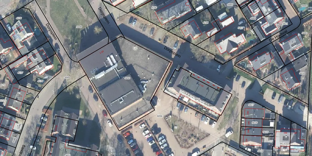 Dorpsplein 1-A is gelegen op kadastraal perceel EDE01B5650. Deze kadastrale aanduiding is uniek en wordt gebruikt door het Kadaster om eigendomsrechten en andere zakelijke rechten vast te leggen. Het perceel maakt onderdeel uit van de kadastrale gemeente Ede.