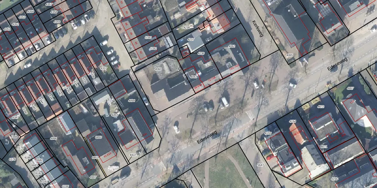 Edeseweg 67-C is gelegen op kadastraal perceel EDE01B4060. Deze kadastrale aanduiding is uniek en wordt gebruikt door het Kadaster om eigendomsrechten en andere zakelijke rechten vast te leggen. Het perceel maakt onderdeel uit van de kadastrale gemeente Ede.