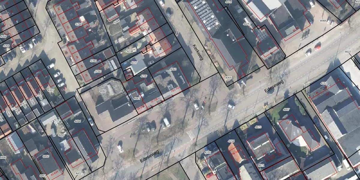 Edeseweg 75-1 is gelegen op kadastraal perceel EDE01B4062. Deze kadastrale aanduiding is uniek en wordt gebruikt door het Kadaster om eigendomsrechten en andere zakelijke rechten vast te leggen. Het perceel maakt onderdeel uit van de kadastrale gemeente Ede.