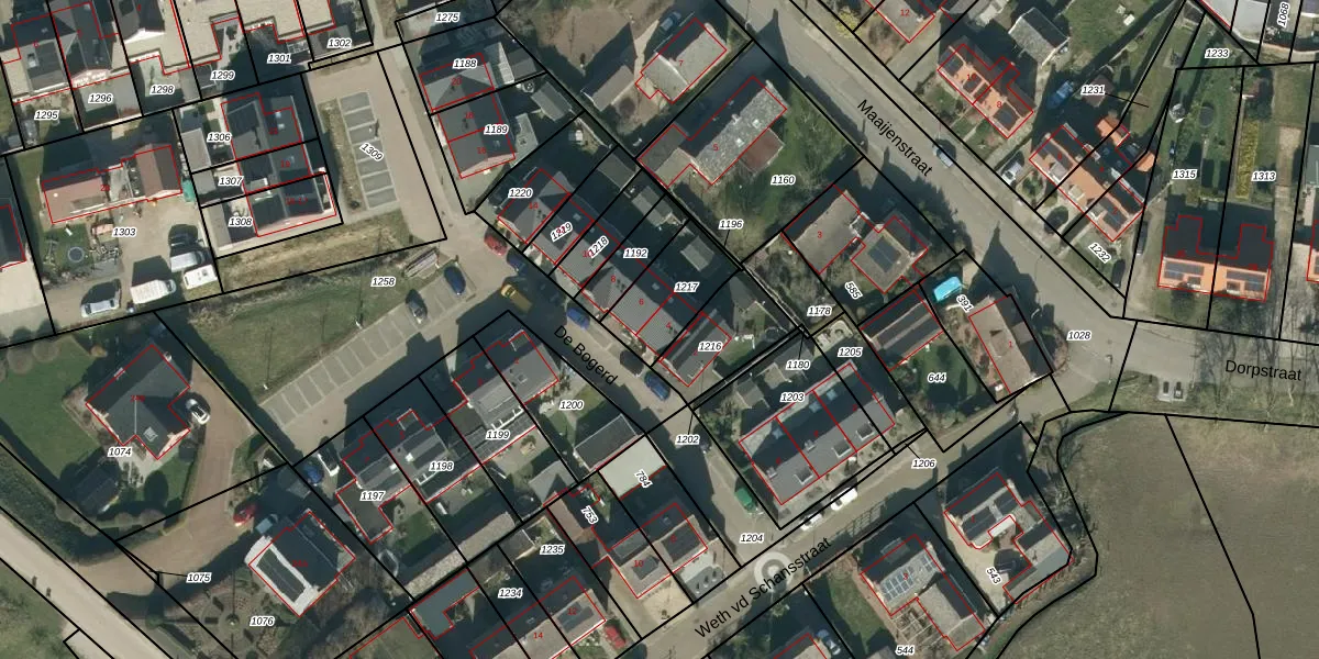 Het perceel waarop De Bogerd 4 staat heeft een oppervlakte van 213 m². Dit is een middelgroot perceel. De perceeloppervlakte wordt geregistreerd door het Kadaster. Gedetailleerde informatie over de maten van dit perceel kunt u vinden in het rapport Kadastrale kaart met maatvoering van De Bogerd 4.