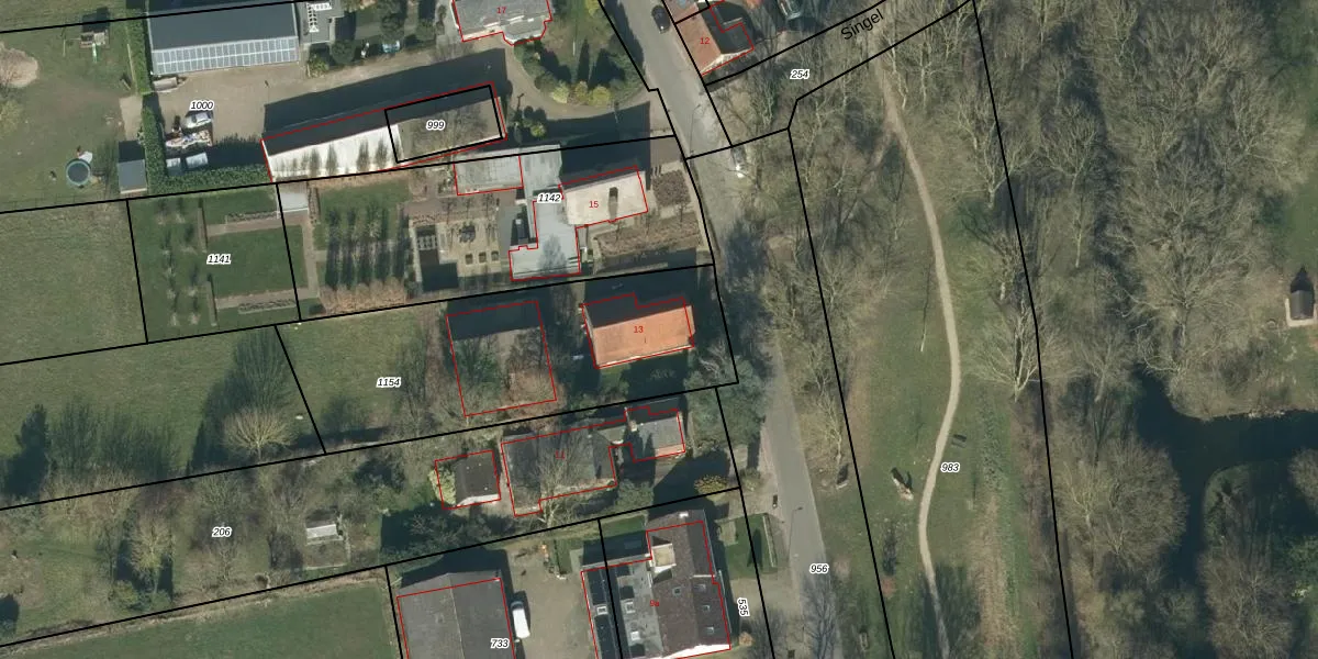 Het perceel waarop Heust 13 staat heeft een oppervlakte van 1265 m². Dit is een zeer groot perceel. De perceeloppervlakte wordt geregistreerd door het Kadaster. Gedetailleerde informatie over de maten van dit perceel kunt u vinden in het rapport Kadastrale kaart met maatvoering van Heust 13.
