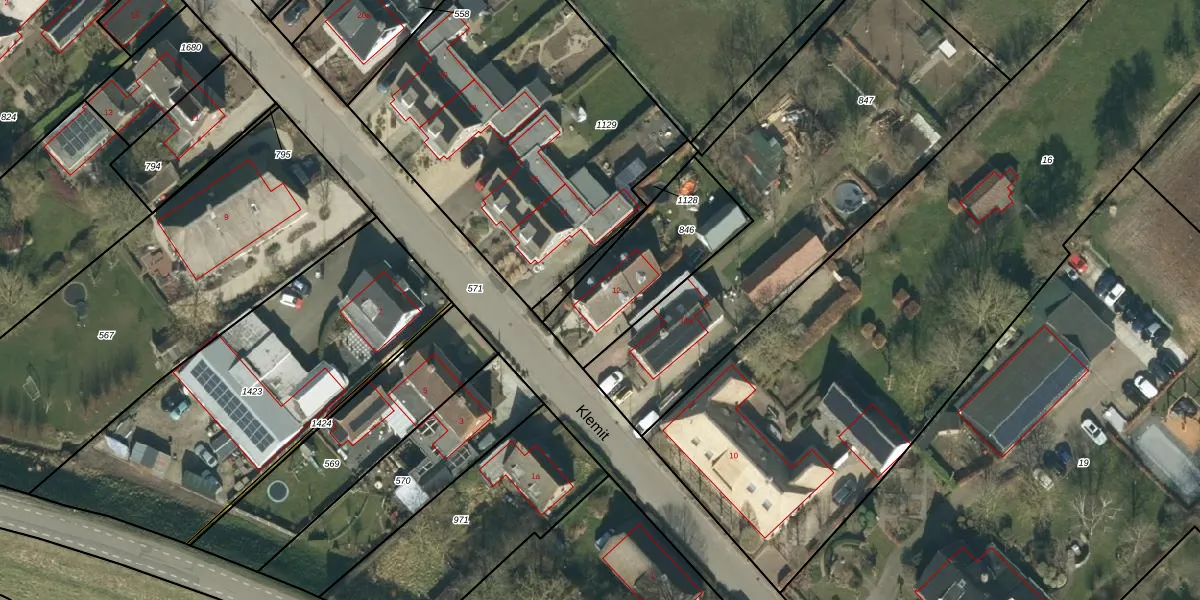 Het perceel waarop Klemit 12 staat heeft een oppervlakte van 450 m². Dit is een groot perceel. De perceeloppervlakte wordt geregistreerd door het Kadaster. Gedetailleerde informatie over de maten van dit perceel kunt u vinden in het rapport Kadastrale kaart met maatvoering van Klemit 12.