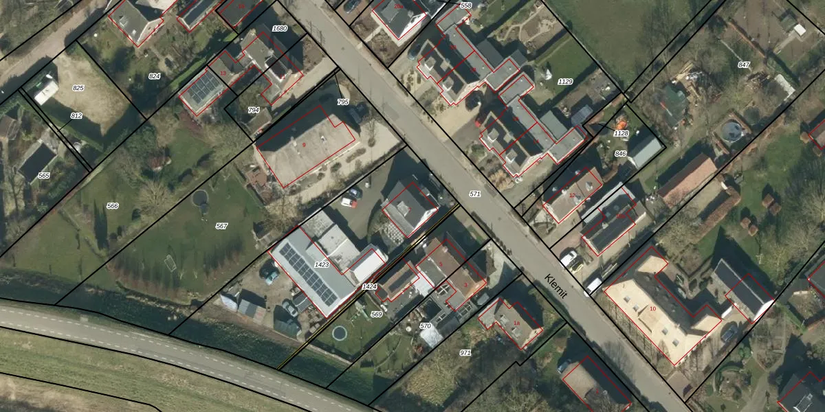 Het perceel waarop Klemit 7 staat heeft een oppervlakte van 1494 m². Dit is een zeer groot perceel. De perceeloppervlakte wordt geregistreerd door het Kadaster. Gedetailleerde informatie over de maten van dit perceel kunt u vinden in het rapport Kadastrale kaart met maatvoering van Klemit 7.