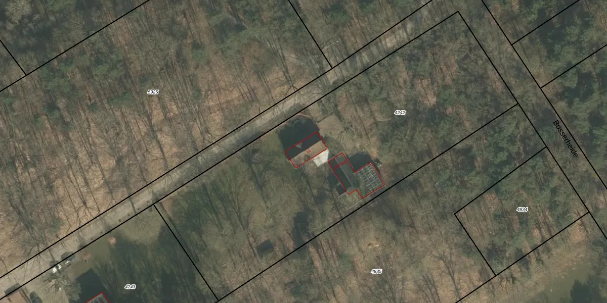 Het perceel waarop Bosserheide 11 staat heeft een oppervlakte van 4450 m². Dit is een zeer groot perceel. De perceeloppervlakte wordt geregistreerd door het Kadaster. Gedetailleerde informatie over de maten van dit perceel kunt u vinden in het rapport Kadastrale kaart met maatvoering van Bosserheide 11.