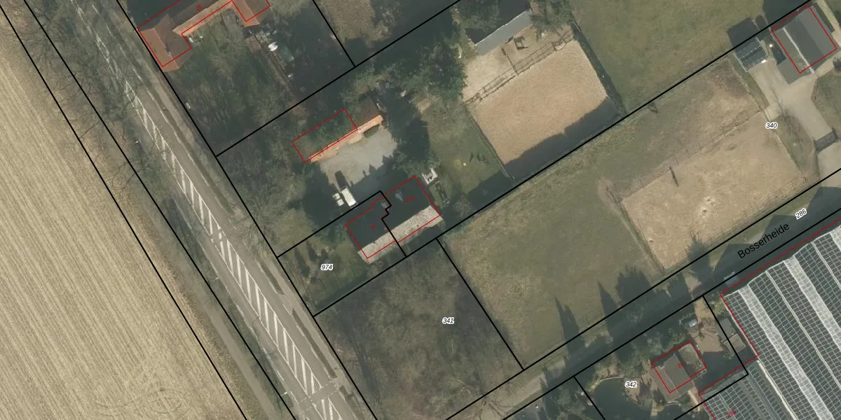 Het perceel waarop Bosserheide 27-a staat heeft een oppervlakte van 9785 m². Dit is een zeer groot perceel. De perceeloppervlakte wordt geregistreerd door het Kadaster. Gedetailleerde informatie over de maten van dit perceel kunt u vinden in het rapport Kadastrale kaart met maatvoering van Bosserheide 27-a.