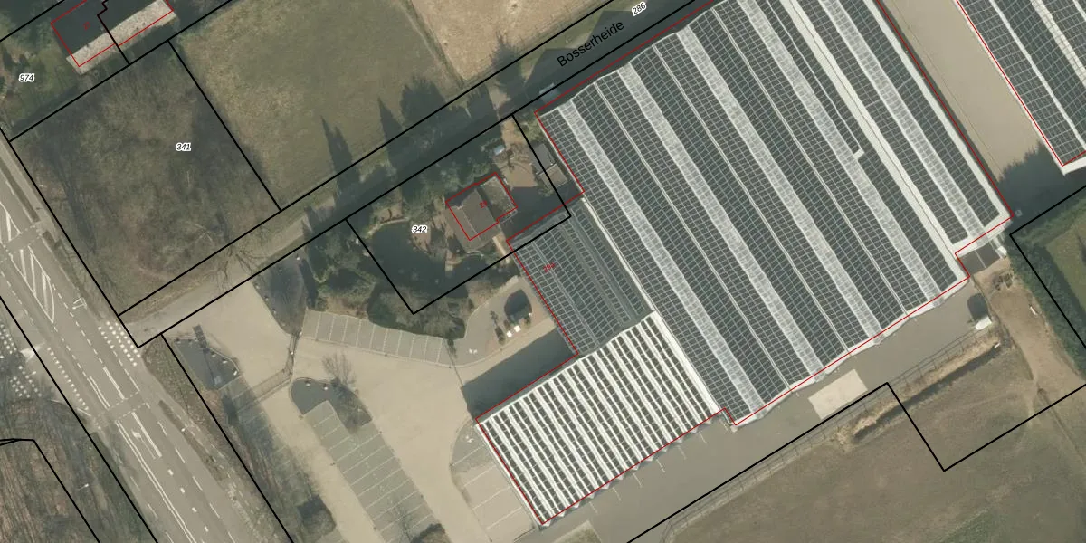 Het perceel waarop Bosserheide 29-a staat heeft een oppervlakte van 1,7 ha. Dit is een zeer groot perceel. De perceeloppervlakte wordt geregistreerd door het Kadaster. Gedetailleerde informatie over de maten van dit perceel kunt u vinden in het rapport Kadastrale kaart met maatvoering van Bosserheide 29-a.