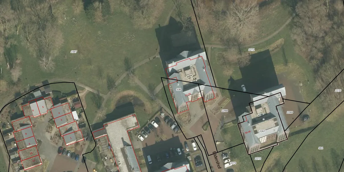 Het perceel waarop Eldershof 27 staat heeft een oppervlakte van 710 m². Dit is een groot perceel. De perceeloppervlakte wordt geregistreerd door het Kadaster. Gedetailleerde informatie over de maten van dit perceel kunt u vinden in het rapport Kadastrale kaart met maatvoering van Eldershof 27.